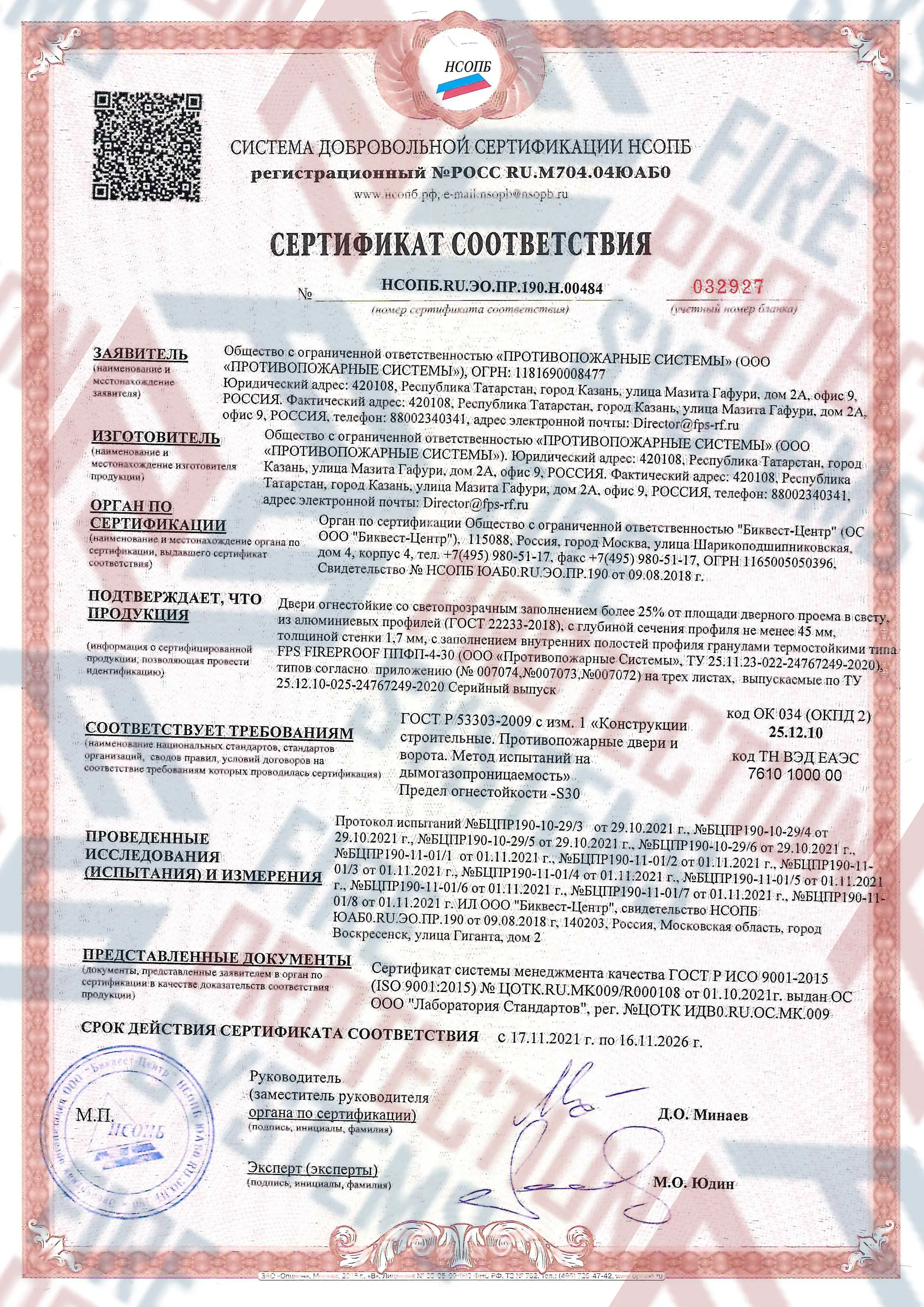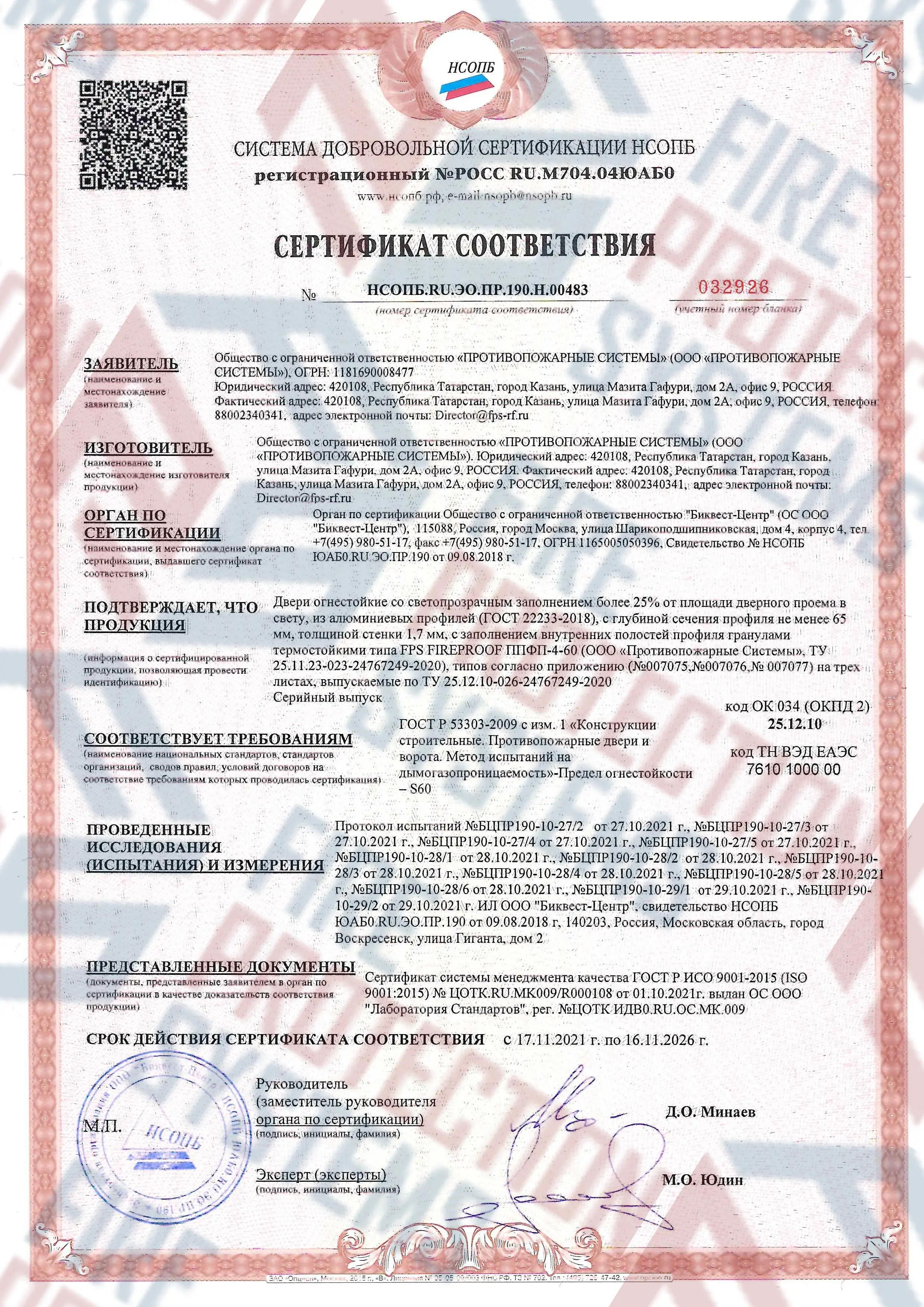 Сертификация – полное соответствие требованиям к противопожарным преградам 1-го типа.